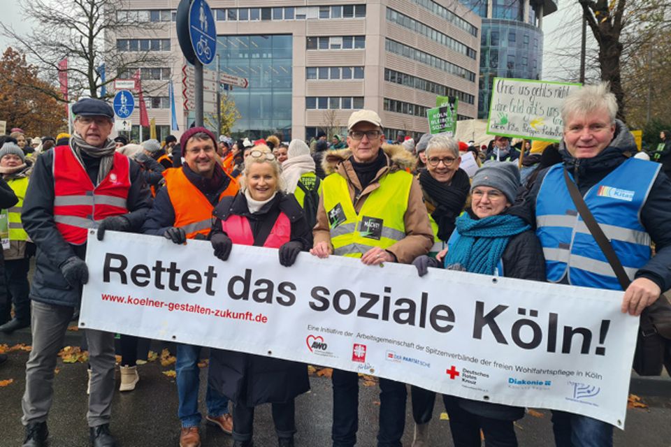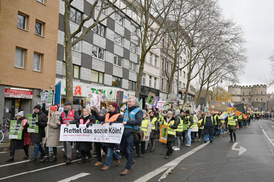Wie schon am Vortag blieben mehr als 500 soziale Einrichtungen, darunter Kitas, offene Ganztagsangebote, Jugendzentren, Seniorenberatungsstellen, Beratungsdienste im Flucht- und Migrationsbereich in Köln geschlossen. Nach dem Aktionstag am Dienstag mit zahlreichen gemeinnützigen Aktivitäten im gesamten Stadtgebiet, haben die sozialen Verbände mit der Demo am Mittwoch ein weiteres Zeichen gesetzt, um ihre Forderungen an die Stadt zu unterstreichen: