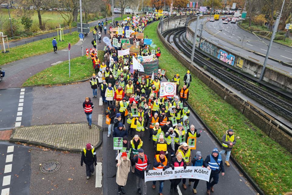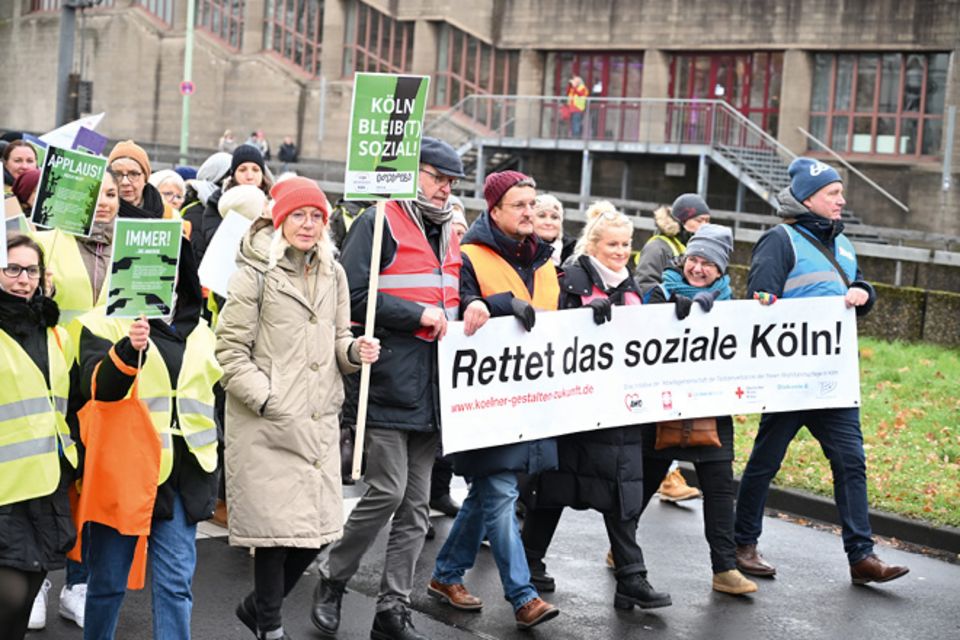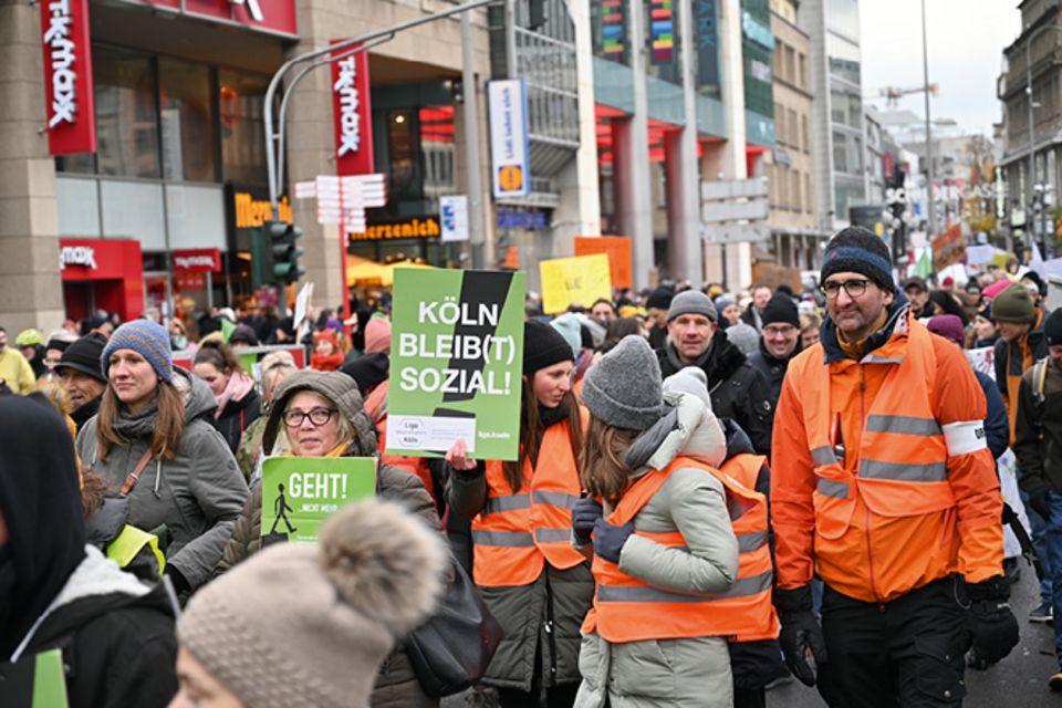 Wie schon am Vortag blieben mehr als 500 soziale Einrichtungen, darunter Kitas, offene Ganztagsangebote, Jugendzentren, Seniorenberatungsstellen, Beratungsdienste im Flucht- und Migrationsbereich in Köln geschlossen. Nach dem Aktionstag am Dienstag mit zahlreichen gemeinnützigen Aktivitäten im gesamten Stadtgebiet, haben die sozialen Verbände mit der Demo am Mittwoch ein weiteres Zeichen gesetzt, um ihre Forderungen an die Stadt zu unterstreichen: